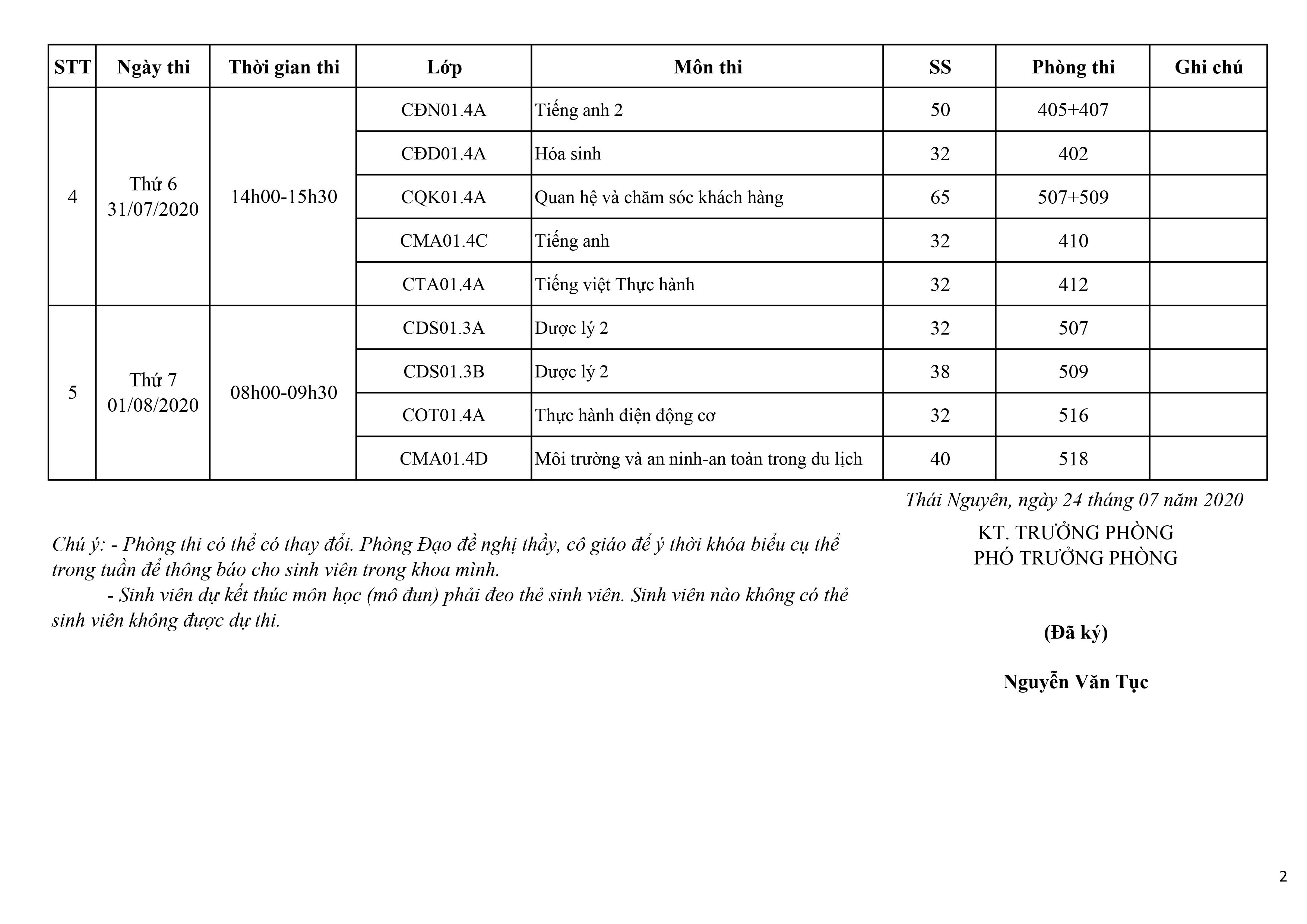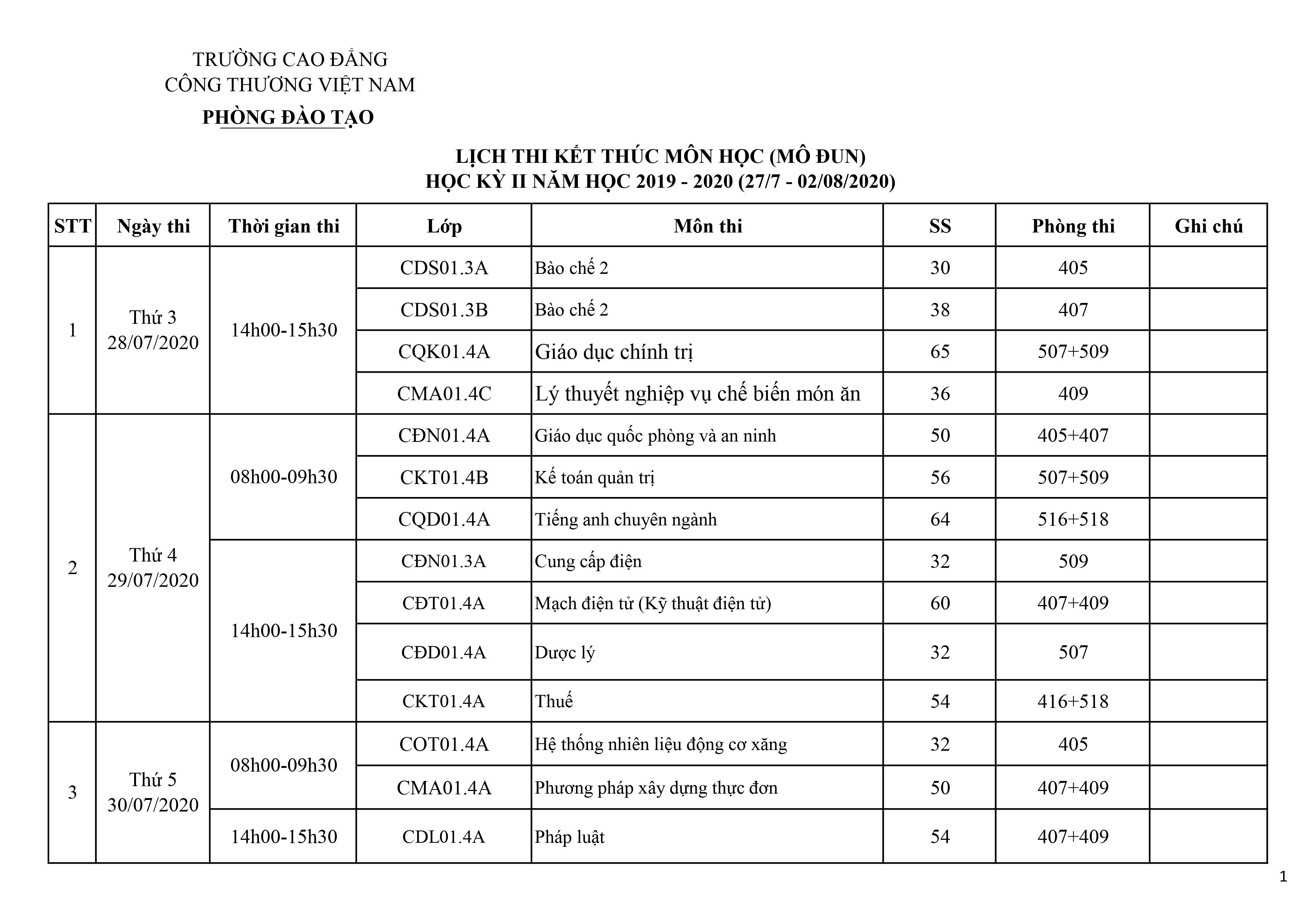 LỊCH THI HỌC KỲ II NĂM HỌC 2019-2020 ( TUẦN 49)