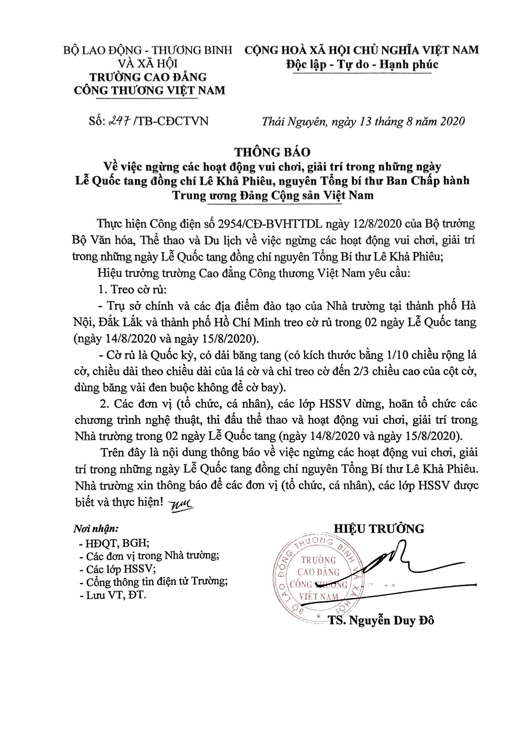 Thông Báo: Ngừng hoạt động vui chơi,giải trí trong những ngày Lễ Quốc tang