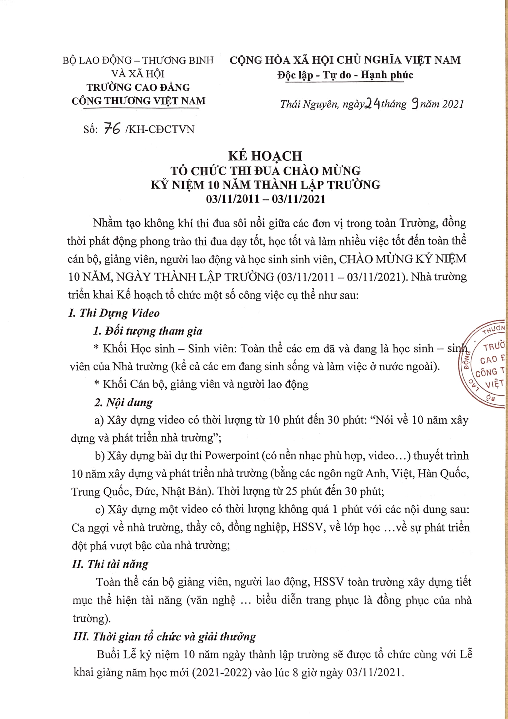 TỔ CHỨC THI ĐUA CHÀO MỪNG KỈ NIỆM 10 NĂM THÀNH LẬP TRƯỜNG