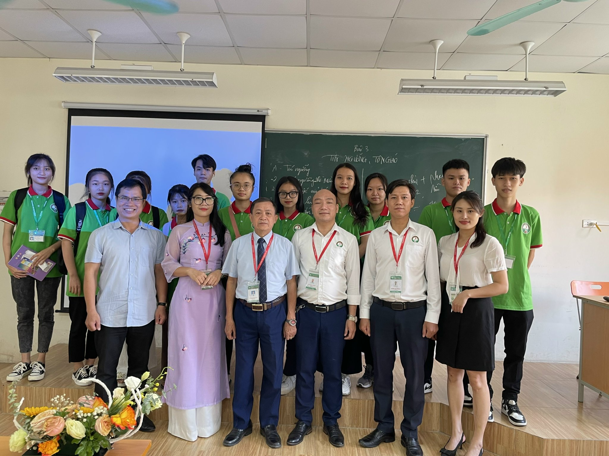 (TS. Nguyễn Duy Đô Hiệu Trưởng và các thầy cô chụp ảnh lưu niệm cùng sinh viên )