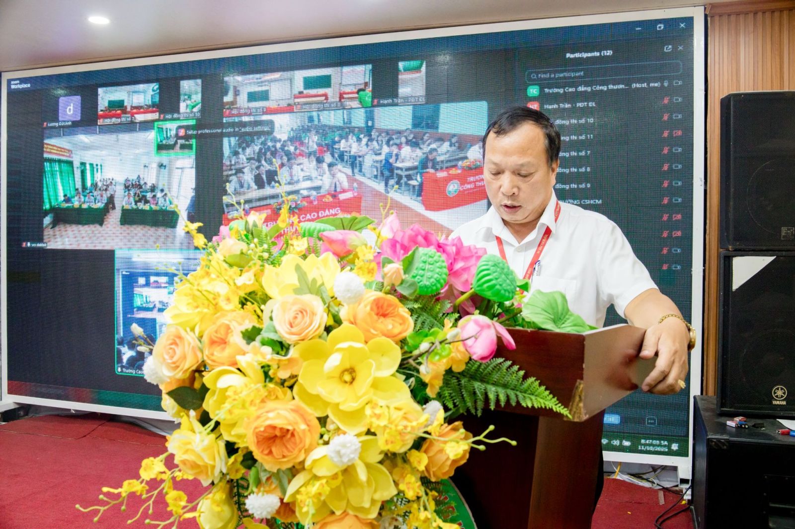 Tham dự chương trình có Th.S Hoàng Mạnh Quân - thư ký HĐQT kiêm Phó Hiệu trưởng nhà trường; ThS. Nguyễn Sỹ Tuấn – Phó Hiệu trưởng thường trực; ThS. Nguyễn Viết Hùng – thành viên HĐQT - Trưởng Phòng Đào tạo cùng các thầy cô trong Ban Cố vấn, lãnh đạo các đơn vị, giảng viên và sinh viên toàn trường.
